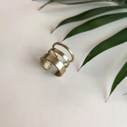 These brass rings offer the perfect blend of tradition and contemporary style. Handmade in India, they are the embodiment of wabi-sabi's allure and nature's irregularities. Wearing these rings is like wearing a piece of history and a glimpse of the future, a reminder to embrace imperfections in a perfect world.